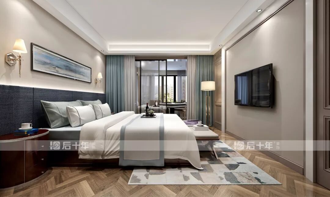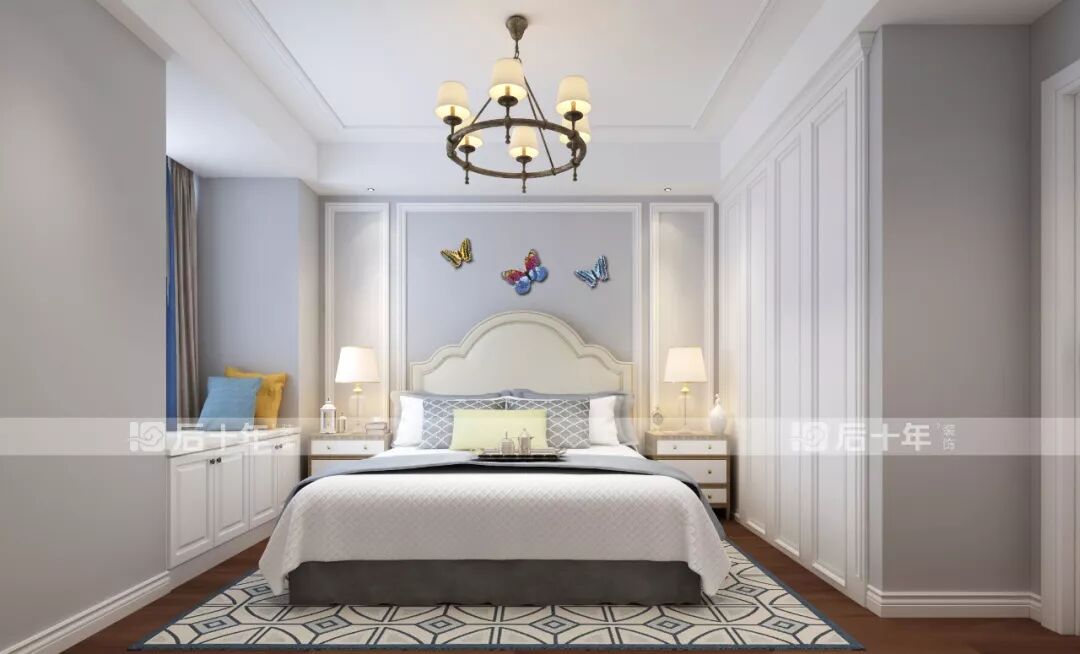 ① 床与墙面之间:至少间隔500mm,这样才有放下标准床头柜的空间,在靠近衣柜的方向,床与衣柜门之间的间隔还要大一点,应该达到700mm;