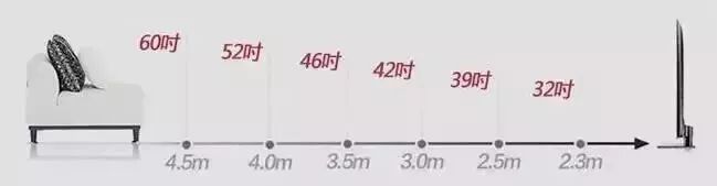 ③ 沙发与电视间的距离:至少需要1300mm,建议在1700mm以上,太近会影响视线。如果客厅面积太大,沙发和电视的距离超过了1.3M,电视应该选多大呢?